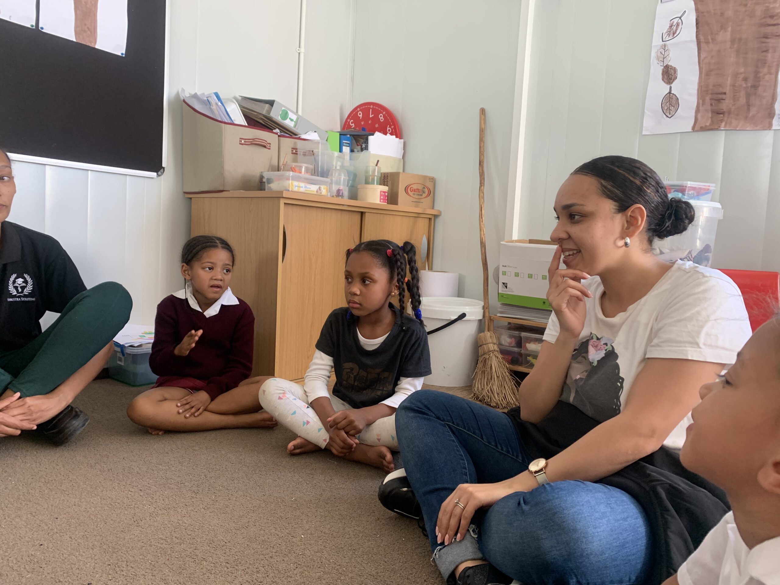 Our Little People is een school van de gemeente, gevestigd in een zwarte wijk van Paarl, waar stenen, niet al te grote huizen staan. Er wordt lesgegeven in het Engels, hoe wel lang niet alle kinderen Engels als thuis taal hebben. De directeur is Leslynn. Zij is ook de leerkracht van Group R. Na group R gaan de kinderen naar een basisschool in de buurt. Ze werken al 4 jaar met het programma van Amazing Brainz, dus sommige van de kinderen in group R zitten al jaren in het programma. Haley zegt dat ze kan zien welke kinderen dat zijn, ze zijn vrijer, zelfverzekerder, hebben een grotere woordenschat.Haley doet een van de lessen die ze in de handleiding beschrijft, de les over bellen blazen. Ik doe de inleiding door een korte vertelronde te doen over dingen die de kinderen in de lucht hebben gezien, die heel mooi waren, maar ook weer snel weg. De kinderen vertellen over insecten, vlinders, wolken. Ook de tweelingbroers, die volgens Haley nooit iets zeggen, vertellen opeens.